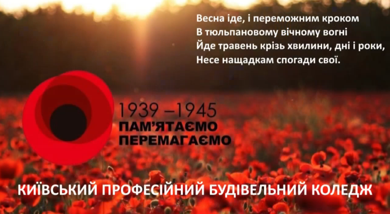 В Київському професійному будівельному коледжі для здобувачів освіти було проведено виховний захід з нагоди Дня пам’яті та примирення. Цей день є нагодою для вшанування пам’яті мільйонів жертв Другої світової війни. Під час заходу здобувачі освіти ознайомилися з історичними фактами про події 1939–1945 років, прослухали та переглянули тематичні матеріали. Але на жаль сьогодні на землі України йде війна, і гинуть люди, і знову править сатана. І хоч доля наклала на нас численні випробування, ми завжди поставали з попелу, ставали ще міцнішими та рішучішими, адже ніхто не може відібрати нашу свободу та силу духу. Перемога буде за нами.