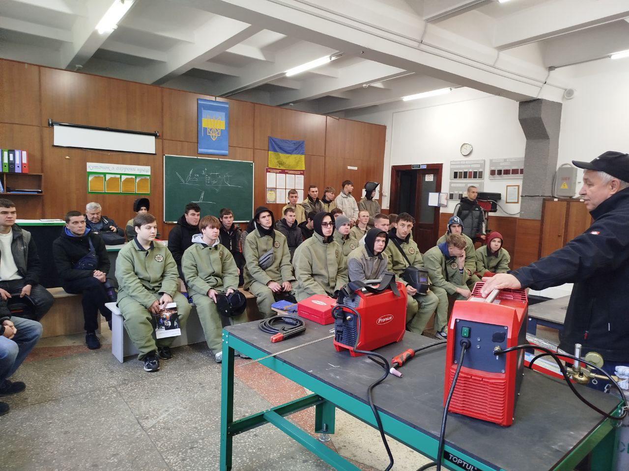 28 жовтня 2025 року в коледжі для учнів груп 38 та ТУ5 наші соціальні партнери – представники ТОВ ФРОНІУС Україна Дмитро Петренко ( інженер зварювання ТОВ ФРОНІУС Україна ) та Володимир Одноріг (менеджер) разом з майстрами виробничого навчання Анатолієм Гребінем, Юрієм Іваницьким провели урок з елементами майстер класу з теми «Аргоно-дугове зварювання алюмінію вольфрамовим електродом в середовищі аргону (ТІG)» з використанням новітнього обладнання – FRONIUS MSGICWAVE 23014075219 та FRONIUS ARTIS 210EF.