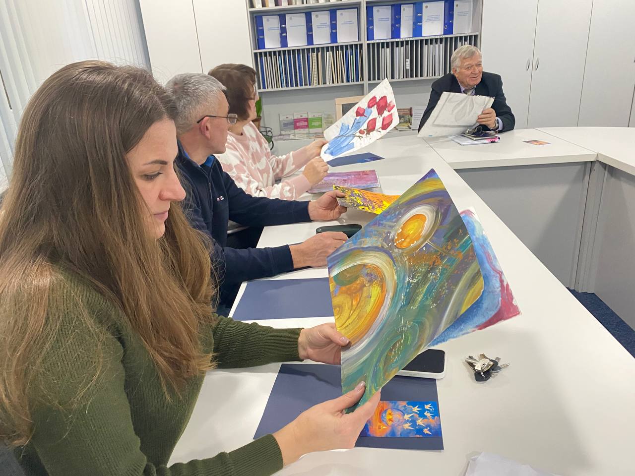 Під час війни кожен педагог щодня несе величезне емоційне навантаження. Через це, особливо важливо знаходити способи підтримки та відновлення внутрішніх ресурсів. Тому, 11.11.2025 року практичним психологом Валентиною Щур, була організована зустріч старшого викладача Східноукраїнського національного університету ім. В. Даля, Стелли Лясоти з викладачами і майстрами в/н та був проведений захід “Арт-терапевтична практика – інтуітивний живопис”, де учасники змогли відтворити свої емоції на полотні. Така творча практика стала нагодою зупинитися, почути себе і відновити внутрішній баланс у непростий для всіх час.