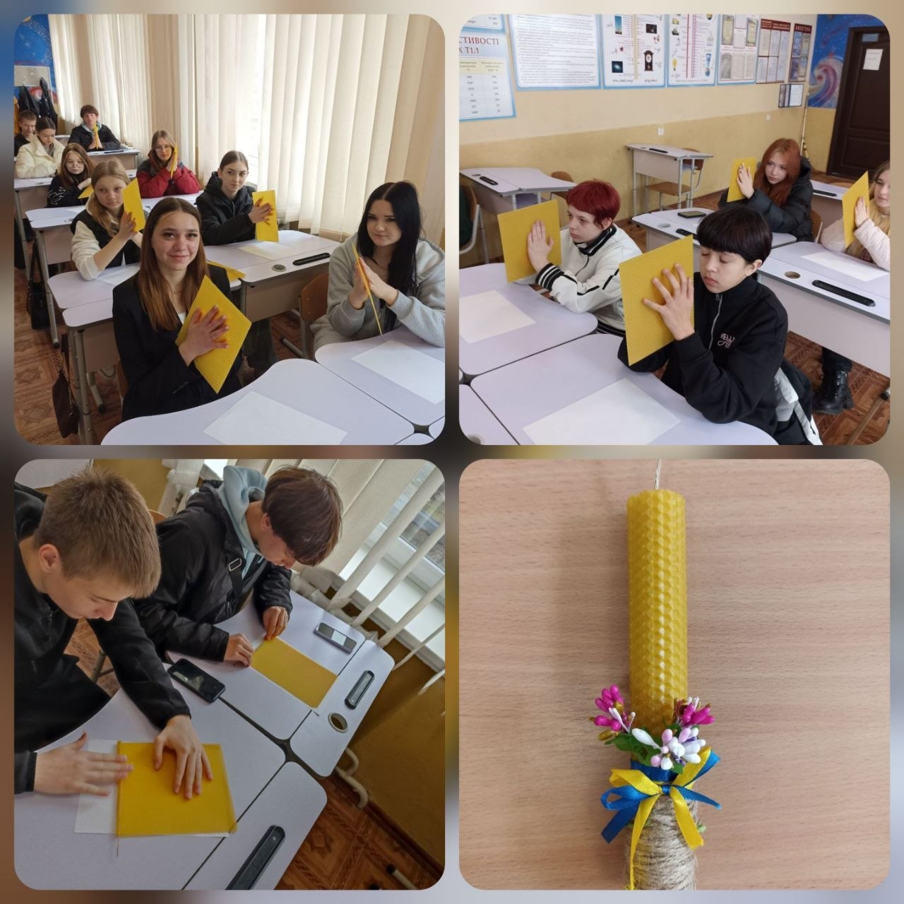В групі №17 “Агент з постачання; адміністратор” керівники групи провели виховну годину «Дива своїми руками». Сьогодні студенти взяли участь у практичному занятті з виготовлення свічок із натуральної вощини. Під час роботи учасники ознайомилися з технологією виготовлення вощини, підбором ґноту, поєднанням кольорів та ароматів, прикрас, а також власноруч створили унікальні вироби. Такий формат навчання сприяє розвитку дрібної моторики, творчого мислення та вміння працювати з матеріалами. Окрім того, студенти отримали не лише нові знання, а й практичний результат своєї роботи — свічки, створені власними руками.